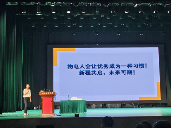 汪闱的宣讲内容丰富,深入浅出。她敏锐把握大一新生普遍存在的误解与困惑,通过生动案例和独到见解,逐一进行澄清与解答。在讲解过程中,她不仅传递了正确的大学观念,更激发了新生们对自我认知的深刻反思,为他们即将开启的大学生涯奠定了坚实的思想基础。她鼓励新生们及早思考未来发展方向,通过分享往届优秀学子的成长经历,生动诠释了理性思考与主动选择的重要性。她强调,扎实的专业知识是成功的基石。建议新生们探索多元化学习方式,如参与科研项目、加入学生社团等,以拓宽视野、提升综合素质。她指出能力储备同样重要,在校期间,学生应着力培养沟通、团队协作、领导和创新等能力,为未来职业发展做好准备。
