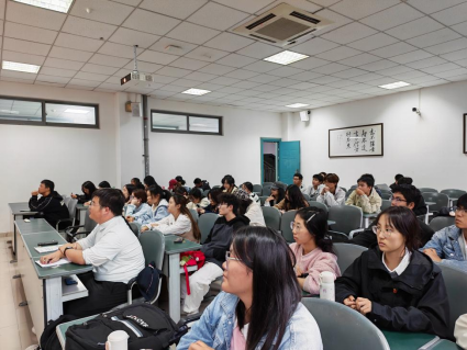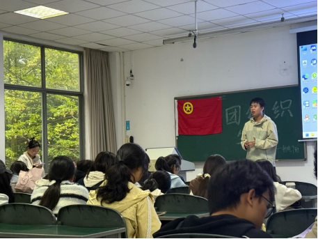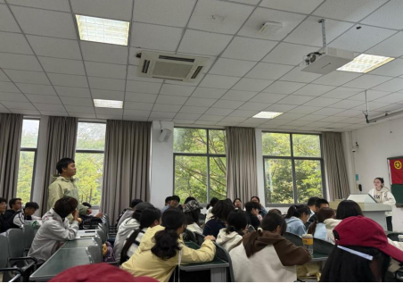 10月20日,四川师范大学物理与电子工程学院2025级9班团支部在成龙校区第一教学楼B207教室举办10月团组织生活。本次活动以“忆烽火岁月凝精神力量,护粮食安全担青春使命”为主题,团支书尹馨玲担任主持人,全班51人100%参与,辅导员李科到场观摩指导。