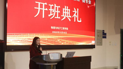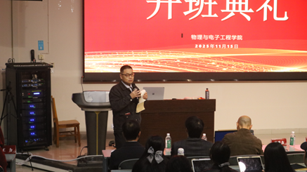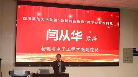 物理与电子工程学院副院长闫从华教授为本次开班典礼致欢迎辞,从为什么要开设“数智创新教育”微专业、如何开设“数智创新教育”微专业、“数智创新教育”微专业的预期成果三方面进行了详细介绍,以及高屋建瓴的解读。闫院长指出,“数智创新教育”微专业不是简单的“课程拼盘”,而是一次跨界重构,期望师生共同助力,把科技教育请进课堂,把“做中学”落到实处,把科普仪器辐射至全国,乃至世界。