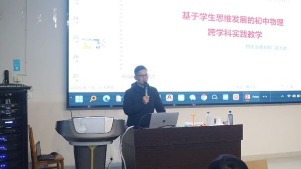 四川省教育科学研究院的寇大武老师聚焦于“基于学生思维发展的初中物理跨学科实践”,详细阐述了跨学科实践教学的具体方法,展示了包括“神奇的眼睛”、“自造云朵”在内的多堂优秀跨学科实践课程,分享了宝贵的教学心得,即跨学科实践需注重趣味性,通过设置问题链,激发学生主动参与,引导学生自主发现并解决问题。