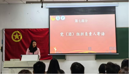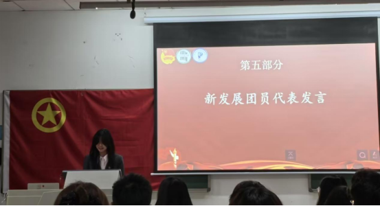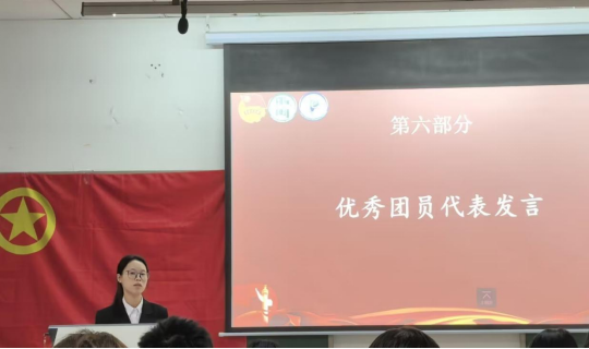物理学2024级2班吕凤梅同学作为优秀团员代表,分享了她五年来在团组织中的成长与感悟。她勉励新团员:“团徽戴在胸前,责任扛在肩上。希望大家牢记初心,将个人成长融入集体发展,在学业中勤学善思,在实践中增长才干,以奋斗为笔、以青春为墨,用饱满的热情和崭新的精神风貌书写出无愧于时代的青春华章。”