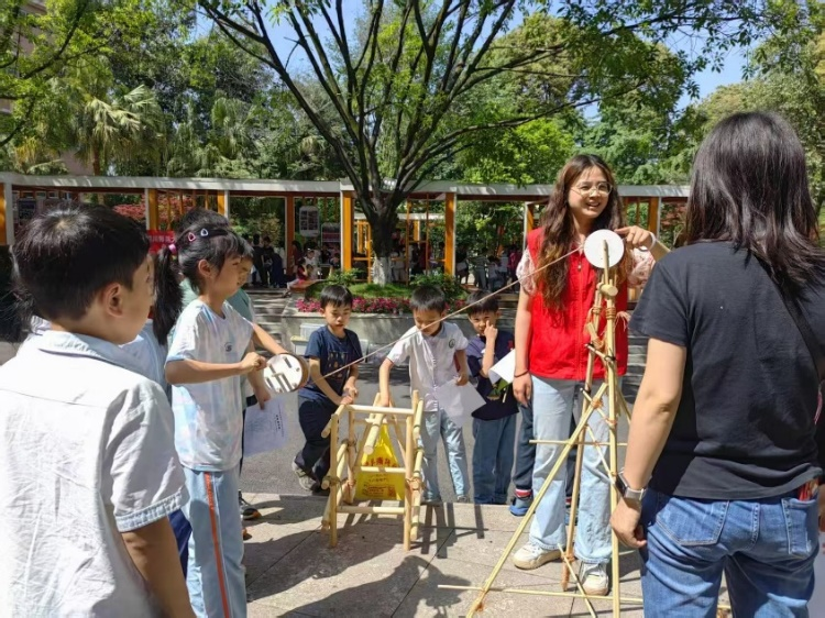 2025年5月8日下午,在四川师范大学物理与电子工程学院闫从华副院长的带领下,由研究生和本科生组成的非遗科普宣传队受邀走进四川师范大学附属实验学校,开展了一场融合了古老智慧与现代科学的主题科普活动。此次活动旨在将非物质文化遗产的种子播撒进少年儿童的心田,并引导他们从独特的科学视角,重新发现传统文化的魅力。