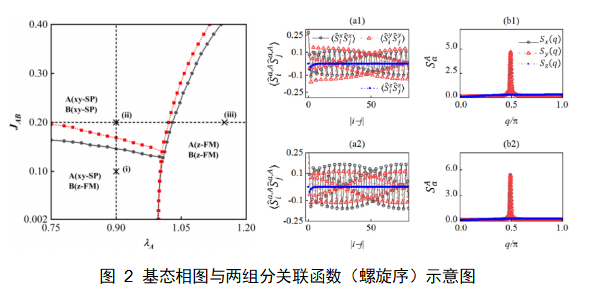 研究发现,组间自旋交换相互作用扮演了“磁性关联传输通道”的关键角色。存在于A组分的DM相互作用,可以通过组间耦合,在原本不具备手性特征的B组分中诱导出螺旋磁序。此外,研究还揭示,施加在A组分上的横场与组间耦合的协同作用,可以驱动两个组分同步地进入顺磁相。这些发现表明,多组分系统因其能够呈现出远超单组分系统的丰富物相,为在高度可控的超冷原子平台上探索和设计复杂的量子多现象提供了新的理论视角。