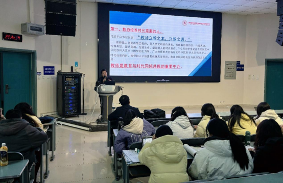 在认清角色——从“学习者”到“引导者”的身份跃迁环节,沈阳老师指出,实习教师需完成视角、责任、行为的三重转变:视角上从“被动接收知识”转为“主动设计学习”,责任上要对学生的学习、纪律与安全负责,行为上需以自身言行成为学生榜样。他还阐释了教师作为知识传授者、课堂组织者与管理者、学生成长引导者的三重核心身份,强调实习期要兼具主动学习与勇敢实践的态度,并向学子们传递了“四有好老师”“四个引路人”等教师职业的核心要求。